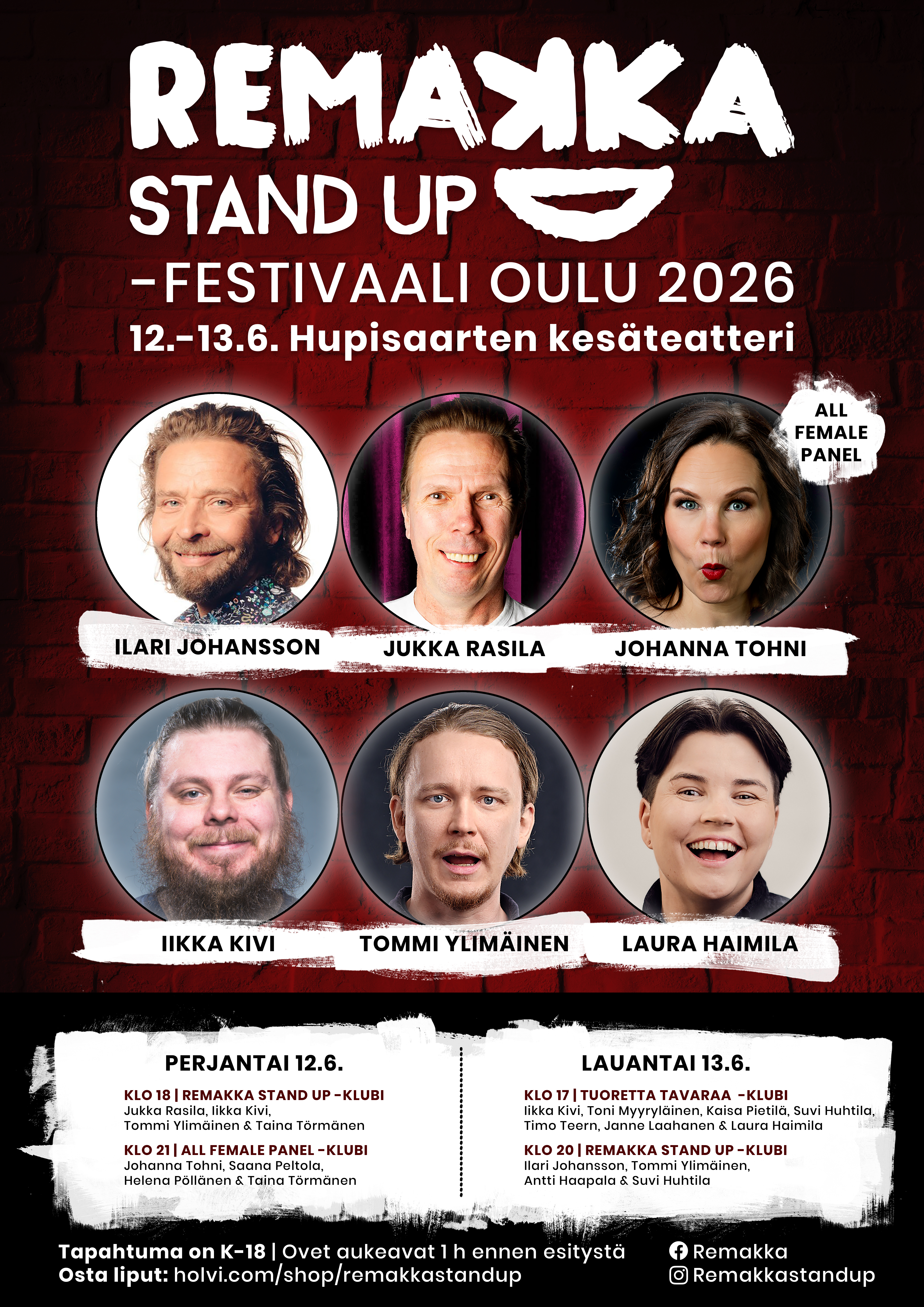 Remakka tuottaa ammattimaisia stand up -klubeja ja -kiertueita ympäri Suomea. Katso KEIKAT -sivulta mistä löydät seuraavan ja lähimmän Remakka -klubin ja tule mukaan viihtymään!